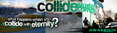 Collide Skate Comp is tentatively scheduled (waiting on the city's approval and also some funding) for either the Friday right before Spring Break (Friday, March 19) or the Friday of Spring Break, March 26. We want to have a band, food, drinks, loud music, tons of skaters, daily giveaways leading up to the event, and of course a Gospel message where we pray many people commit their lives to Jesus Christ.